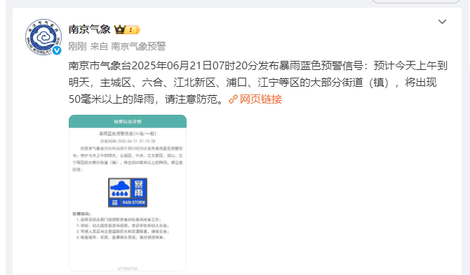 内容来源:南京气象、南京警方