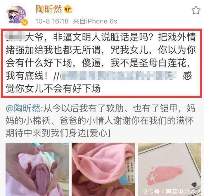 2016年陶昕然和何建泽的女儿出生,她第一时间和网友分享喜悦: