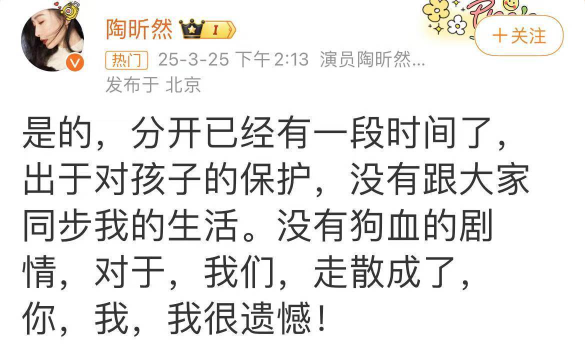 可是,今天,陶昕然却官宣了离婚的消息。